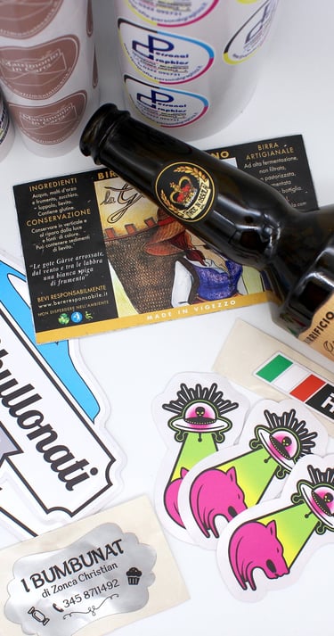 Dai vita alle tue idee con i nostri sticker, adesivi ed etichette personalizzate. Sia che tu stia cercando un modo creativo per promuovere il tuo brand, decorare un oggetto personale o organizzare al meglio i tuoi prodotti, abbiamo la soluzione perfetta per te.