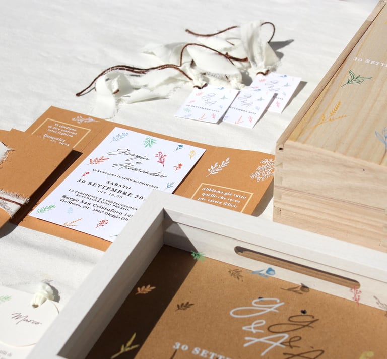 Scopri la nostra azienda dedicata a partecipazioni e coordinati grafici per matrimoni ed eventi.